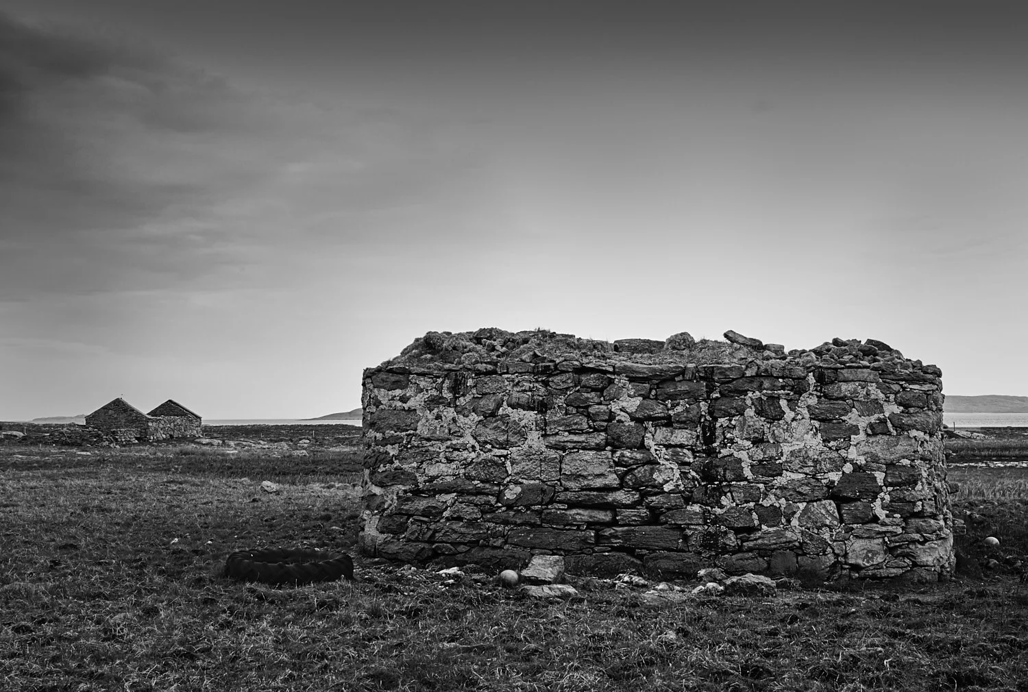 The croft in Paul Strand’s image had a turf roof which today will be missing or replaced with tiles or thatch, and the building is shown against a virtually bare, low skyline. So, apart from any possible clue given by what looks to be a stone enclosure to the left, successful identification of the exact shooting location in the scattered hamlet of Smerclett (Smercleit) was always likely to be a matter of luck.