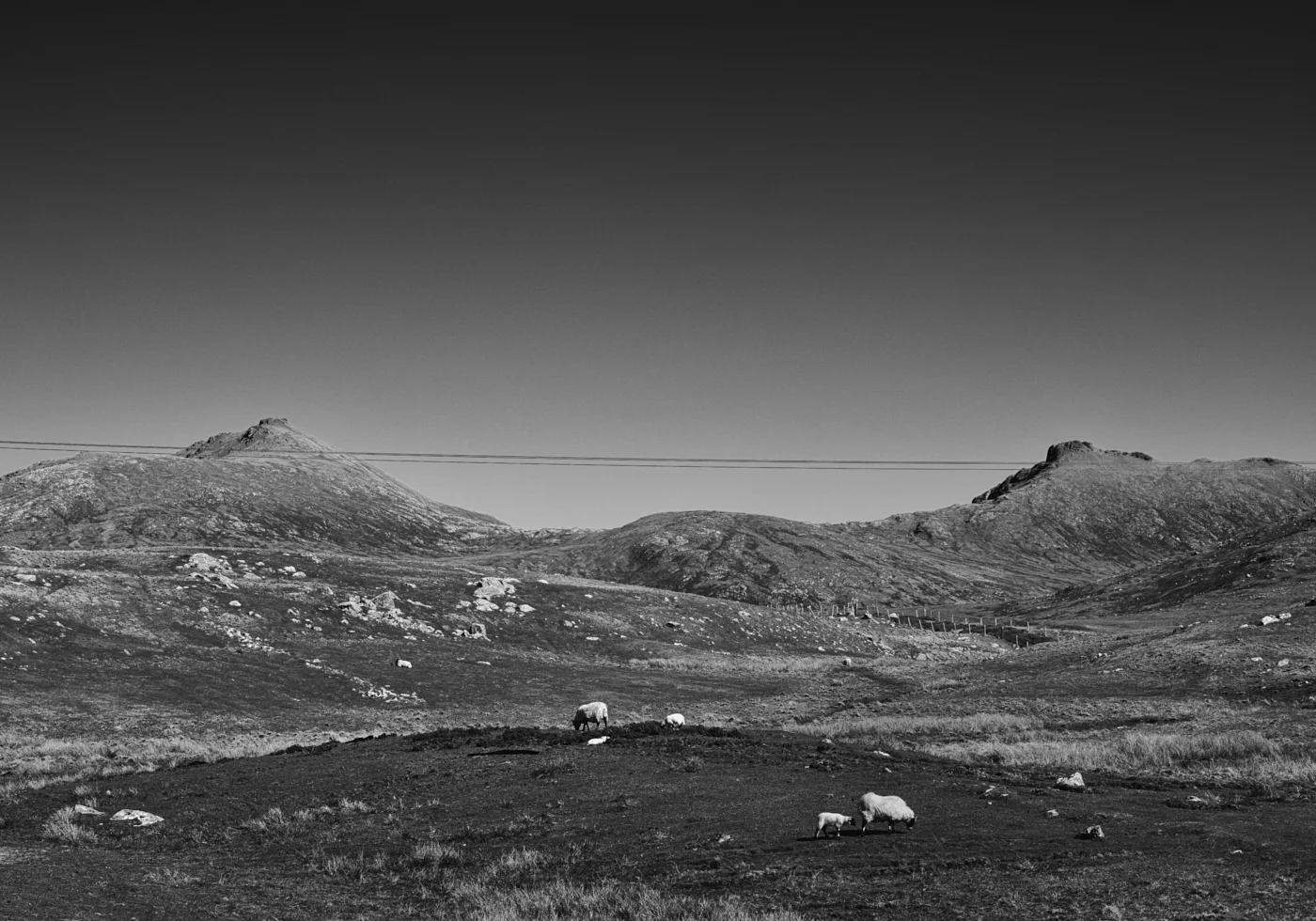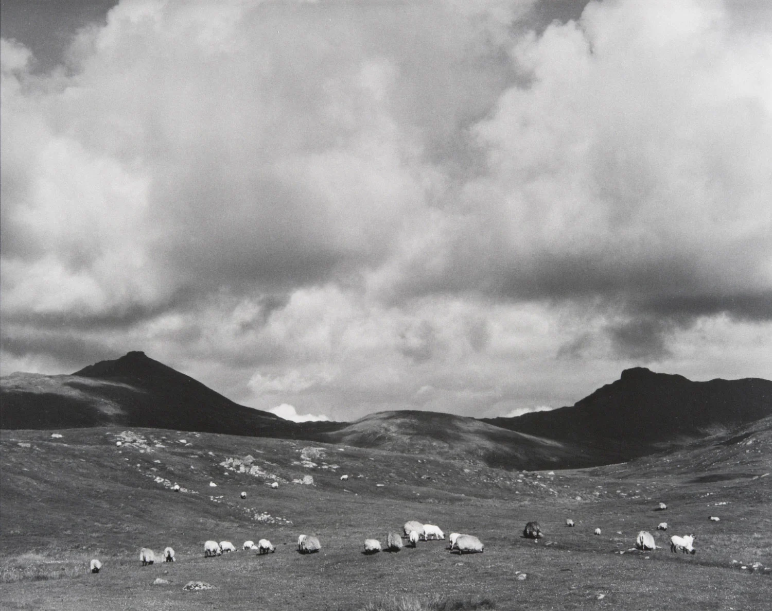Paul Strand’s large image spreads across pages 66 and 67 of Tir A' Mhurain and parallels the human form, with the rocky outcrops crowning Beinn Mhor and Beinn Choradail symmetrically framing the view over the gentle rise of Maola Breac at the north-western side of South Uist.
